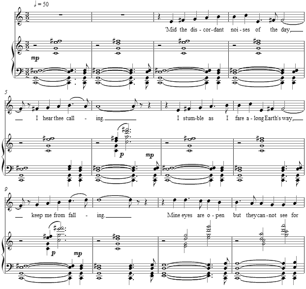 'Mid the discordant noises of the day I hear thee calling;
