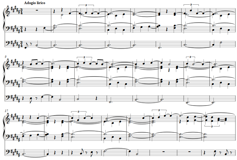 A gentle motet-like texture with duple against triple gestures intended for a single, quiet registration