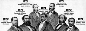 First Black Southern Republicans, circa 1870 Similar use of vocabulary greeted the entrance of the first black Congressmen from the post-Civil War South, many black Republicans. Of one of these, as an example, one reads: "Hiram Rhodes Revels (September 27, 1827 – January 16, 1901) was a Republican U.S. Senator, minister in the African Methodist Episcopal Church, and a college administrator. Born free in North Carolina, he later lived and worked in Ohio, where he voted before the Civil War. He became the first African American to serve in the U.S. Congress when he was elected to the United States Senate as a Republican to represent Mississippi in 1870 and 1871 during the Reconstruction era." In "Hiram Rhodes Revels," Wikipedia, n. d. A Racist, Race-obsessed New Left In Seattle's "autonomous zone" in 2020, which now some wish to re-label given the hints of the history of succession in the US, and ostensibly in a time when "black lives matter," a black man carried an American flag, and was labeled "race traitor." A video testifies, though major news networks ignored this. One finds however: "Here they are, white liberals harassing a black man because he has a flag. Does that seem a bit odd to anyone? They yell some terrible things at the man as he walks through the crowd. This is supposed to be the peaceful protesters who started their own little neighborhood by taking over about six blocks of territory in Seattle. They've made it the no-cop zone and even planted a really bad farm. But instead of being welcoming to people who enter, they are being hostile to this one simply because he has a flag." In "Black man harassed for carrying American flag through protest zone," Trending News (video), posted by Frank the Tank, 17 June 2020. Given the idiotic assertion by the modern Left that a black man carrying an American flag is a "race traitor," then the above pictured first black men in Congress, Republicans no less, in circa 1870 were also "race traitors." Rather they were targets of racist Democrats of that era, as a black man carrying an American flag is the target to today's racist Left.