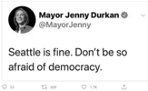Addendum of Private Security Firms Swamped with Calls: "Business owners, afraid that Mayor Jenny Durkan will continue to let the rioters go buck wild while simultaneously standing down the cops, are hiring private security at a frantic pace. The Seattle Times reports that local security firms have been swamped with calls asking for private security to watch their businesses in case rioters, arsonists and looters further target them." In "Seattle's Liberal Elite Cheer Anti-Police Protesters Then Hire Their Own Private Security," by Victoria Taft, PJ Media, 15 June 2020.