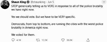 Addendum of Kicking Your Own Ass as Apology: "A Manhattan NYPD lieutenant sent an email to his fellow officers apologizing for kneeling alongside George Floyd protesters late last month — telling them that 'the cop in me wants to kick my own ass.' In a June 3 email obtained by The Post Thursday, Lt. Robert Cattani of the Midtown South Precinct said he regrets his 'horrible decision to give into a crowd of protesters'’ demands' and kneel at Foley Square in Lower Manhattan, with several other cops." In " NYPD lieutenant apologizes for kneeling alongside George Floyd protesters," by Tina Moore and Amanda Woods, New York Post, 11 June 2020. Addendum as Contrast on the Subject of Police Brutality: "On July 15, 2017, Justine Ruszczyk, also known as Justine Damond, a 40-year-old Australian-American woman, was fatally shot by Mohamed Noor, a Somali-American Minneapolis Police Department officer, after she had called 9-1-1 to report the possible assault of a woman in an alley behind her house. Noor was ultimately arrested and charged with second-degree manslaughter and third-degree murder following an eight-month investigation by the Minnesota Bureau of Criminal Apprehension and the Hennepin County Attorney's Office. In April 2019, Noor was convicted of third-degree murder and manslaughter, but acquitted of intentional second-degree murder. In June 2019, Noor was sentenced to 12.5 years in prison. Damond's family brought a civil lawsuit against the City of Minneapolis alleging violation of Damond's civil rights, which the city settled for $US20 million, one of the largest-ever settlements in a suit involving a police killing." In "Shooting of Justine Damond," Wikipedia article, n .d . Addendum of Other Funerals for Minneapolis' Mayor to Attend: "There were a total of 12 victims in the shooting. One adult male died at the hospital and the remaining 11 adult victims are all receiving treatment for non-life-threatening injuries suffered in the incident." In "11 people shot, 1 person dead in overnight shooting spree," by Jon Haworth, ABC News, 21 June 2020. [ 5 ] Addendum of Waiting for the Massive Public Outpouring of Grief: "Shots rang out Saturday night in Atlanta near the burned-down Wendy's where Rayshard Brooks was killed last month after stealing a taser from police and firing it at them. Secoriea Taylor, an eight-year-old girl was shot dead. Now, young Secoriea's father is speaking out. 'They say black lives matter. You killed your own this time. You killed a child. She didn’t do nothing to nobody,' Secoriya Williamson, the father of young Secoriea said at a press conference on Sunday." In "Father of eight-year-old girl killed in occupied Atlanta parking lot speaks out," by Barrett Wilson, Post Millennial, 5 July 2020. [ 6 ] NOTES [ 1 ] Charges of systemic racism dot the media's landscape. One notes of deadly Chicago, Illinois, the mayors have been mostly Democrats, the Cook County Board Presidents Democrats, and most governors have been Democrat as well. Additionally, one finds political statistics in Chicago, Illinois as follows. The political affiliation shows a Democrat percentage of 76.2% (2018). Being largely the political power there, one then faces a conundrum. Systemic Racism in the System of Democrat Political Leadership