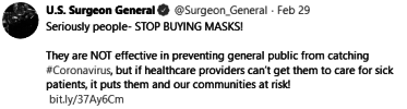 A Reprise for the Optics of It All One looks back only months: " 'There's no reason to be walking around with a mask,' infectious disease expert Dr. Anthony Fauci told 60 Minutes." In "March 2020: Dr. Anthony Fauci talks with Dr Jon LaPook about COVID-19," by Brit McCandless Farmer, 60 Minutes/CBS, 8 Mar 2020.