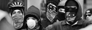 A mask of revolutionary politics As to the white Leftist, enamored of masks, costumes and revolutionary role playing: "The white left knows its rights. First, the freedom to choose exemplary destruction for others. Second, the right to demand protection and favors from the white man’s government: student-loan cancellation and Universal Basic Income, for example. Third, the right to change the system so it works better for its hereditary proprietors. You may not be interested in antifa’s dialectic, but their dialectic is very interested in you." In "Antifa’s white privilege," by Ross Clark, Spectator, 30 May 2020. The Pretense The pretense of being anti-fascist while acting out violently is a sort of camouflage. From the 1930s in Germany forward, the anti-fascist has proposed a different form of authoritarianism, Communism, which has been historically more murderous to its own people than the comparatively smaller Italian fascism under Mussolini. As such, the hammer and sickle is not a sign of "liberty for all" but rather a sign of hoped for authoritarianism, just one of a different form from fascism. But fists, cudgels and mobs make little distinction between these. One form of tyranny is quite related to its cousins, the only remaining question being "who rules."