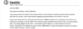 Addendum of the Seattle Police Gelded by City Politics: "Dear Business Owner and/or Resident: ...know that the City Council Ordinance 119805 Crowd Control Tool goes into effect this weekend on Sunday, July 26, 2020. This ordinance bans Seattle Police officers the use of less lethal tools, including pepper spray that is commonly used to disperse crowds that have turned violent. Simply put, the legislation gives officers NO ability to safely intercede to preserve property in the midst of a large, violent crowd." In Seattle Police letter by Carmen Best, 24 July, 2020. Addendum of Carmen Best's Resignation from Racist Seattle: " 'This is an anti-Blackness issue at the highest level,' declared police accountability activist Harriett Walden. Unlike Best and Durkan, Walden did not hesitate to blame racism among the city's diverse City Council for forcing Best out. 'So people of color, at the end of the day, they don't always stand for us,' she said. Walden says she sees the 'anti-Blackness' on the current council. 'That's right,' she said. 'I see it on this council. Because they wouldn't have done it against O'Toole. I don't care how many people was in the streets marching. There's no way they would have defunded the police department with a white lady'." In "Black community blaming ‘racism’ for police chief’s departure," by Deborah Horne, KIRO 7 News, 11 August 2020. Addendum of the Coming Costs of Seattle's Summer of Love: "This isn’t exactly the Summer of Love described by Seattle Mayor Jenny Durkan. In fact, it could end up costing the city, county, and state a huge payout. The taxpayers and voters in Washington will not remember that fondly." In "Father of Man Killed in Seattle's CHAZ/CHOP Sues City, State for $3 BILLION," by Jeff Reynolds, PJ Media, 28 August 2020. NOTES [ 1 ] The article notes: "One CHAZ resident tweeted, 'It's a victory for #seattleprotests, but please remember that we are still occupying Duwamish Indian land.' There have been similar effusions of solidarity with the gay community, illegal immigrants, the 'fascist-oppressed' in general, and even to the memory of poor George Floyd. But apparently our town's experiment in communal living has also had its challenges. 'The homeles [sic] people we invited here took away all our food,' one Twitter user reported glumly."