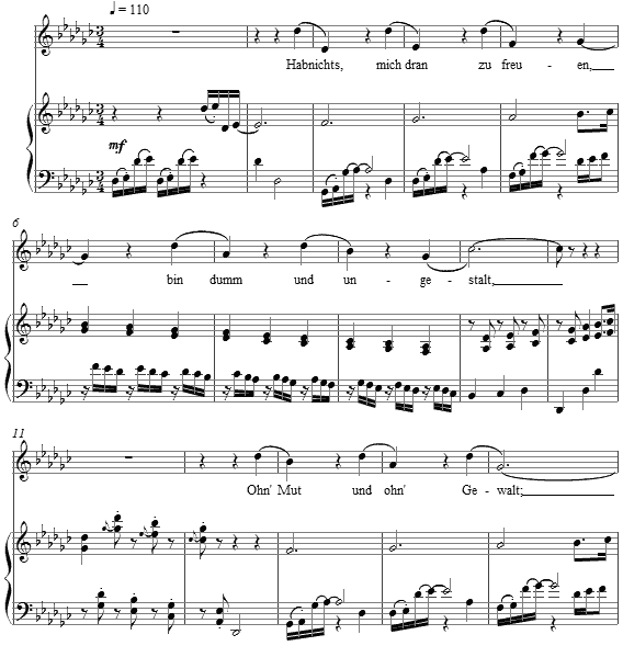 This fine bit of humor finds all of the complaints of life offset by the one bit of braggadocio which makes all sensible within its overarching frame of reference. This is the narcissist's creed, after all, wherein faults are so easily ignored and burdens ignored in favor of the self-gazing love of self. So for this donkey's complaints, the setting remains in the bright major and with light-hearted gestures to accompany this sense of self-satisfaction.
