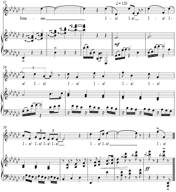 The score for Der Esel is available as a free PDF download, though any major commercial performance or recording of the work is prohibited without prior arrangement with the composer. Click on the graphic below for this piano-vocal score.