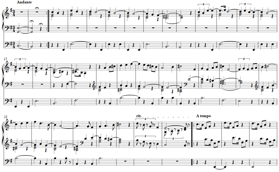 A subject as "Gestalt" in three voices, and then in arpeggios capturing the harmonic implications.