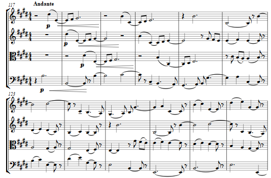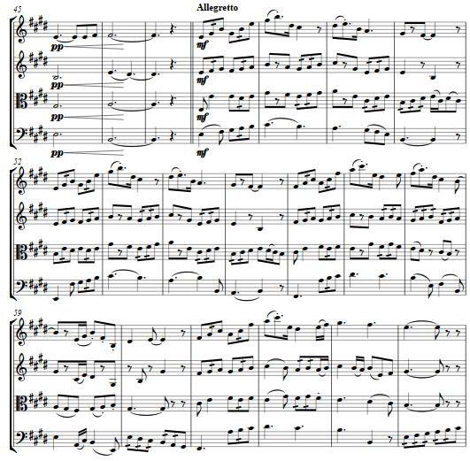 The score for Quartet for Strings in D major is available as a free PDF download, though any major commercial performance or recording of the work is prohibited without prior arrangement with the composer. Click on the graphic below for this score.